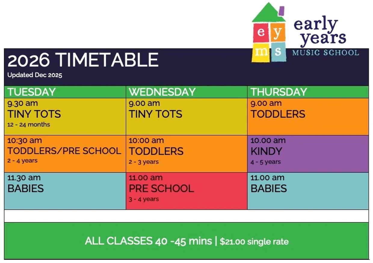 EYMS 10 CLASS PASS is able to be used in any class, with any family member, without an expiry date. This means you are not committed to one class group or day if you don't think your lifestyle allows it. Pricing is very similar to Single rate, and it is a flat rate applicable to singles, siblings and twins.